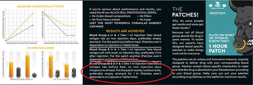 1) HE INJECTS 1 ML BULL BOLD 600 AT A TIME OF HIS CONVENIENCE. HE TAKES HIS BLOOD ANDROGEN TAB WITH THE INJECTION